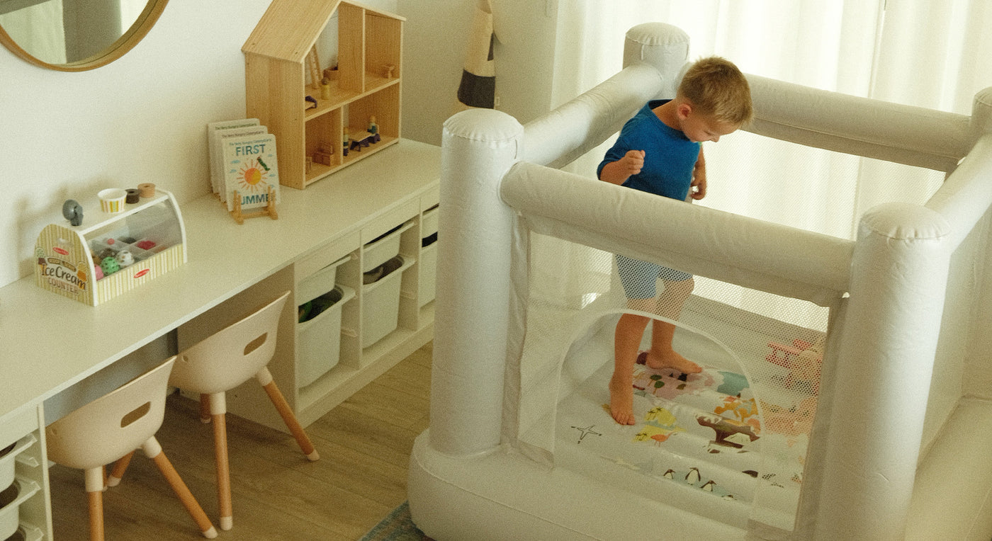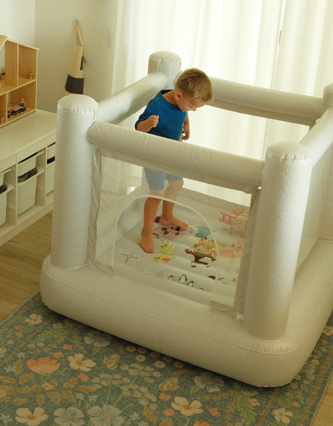 As a kid, there’s almost nothing more magical than bouncing and taking flight. As a parent there’s almost nothing more magical than watching your kids expend that imaginative energy in a beautiful space. We wanted to create a bounce house that allows you to capture all the beautiful in between moments in your own home, every day.