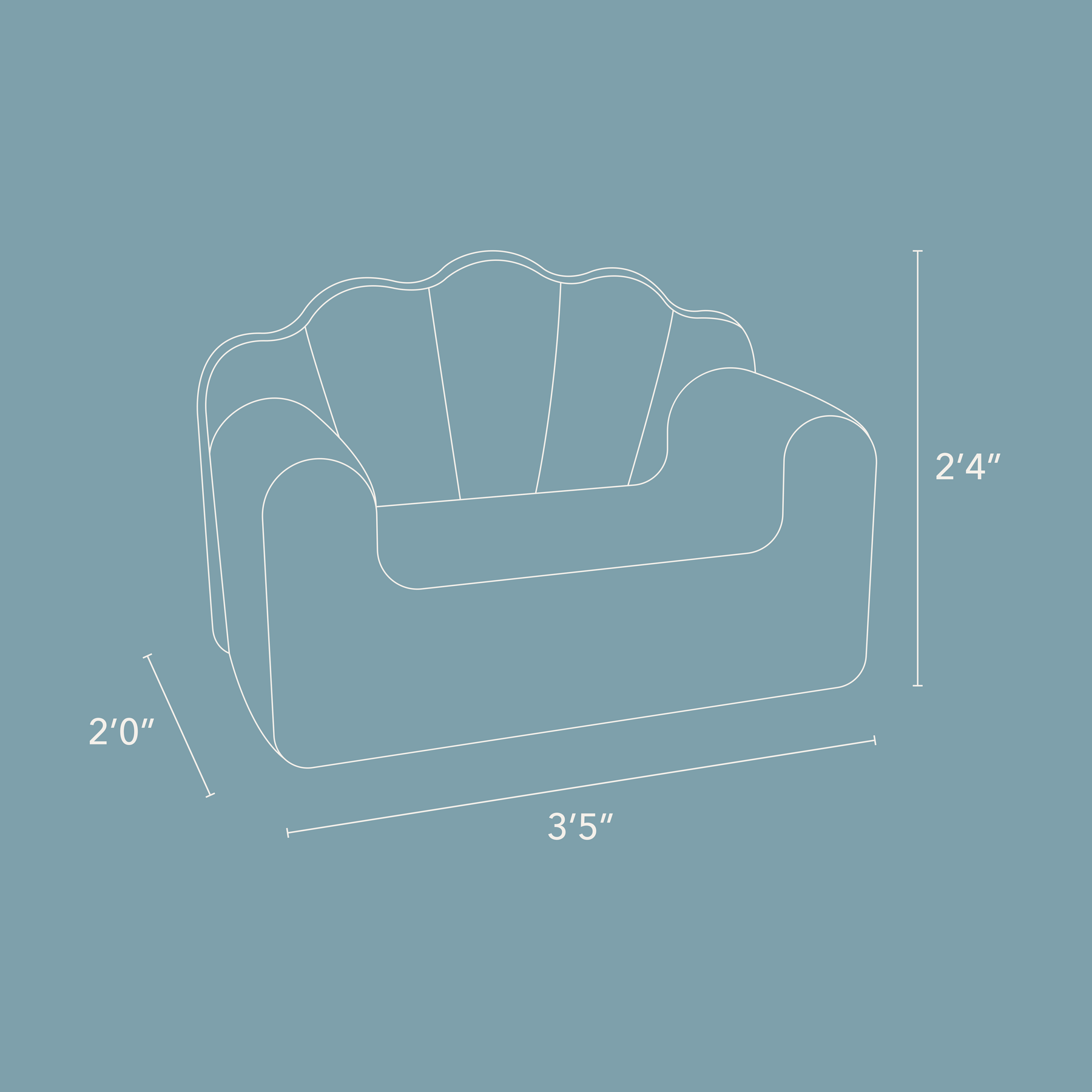 Throwback vibes, made for today’s play. This inflatable duo, featuring a floral chair and striped scallop couch, brings playful, 90s-kid charm to any space. Perfect for lounging, reading, or pulling into the living room for movie night.